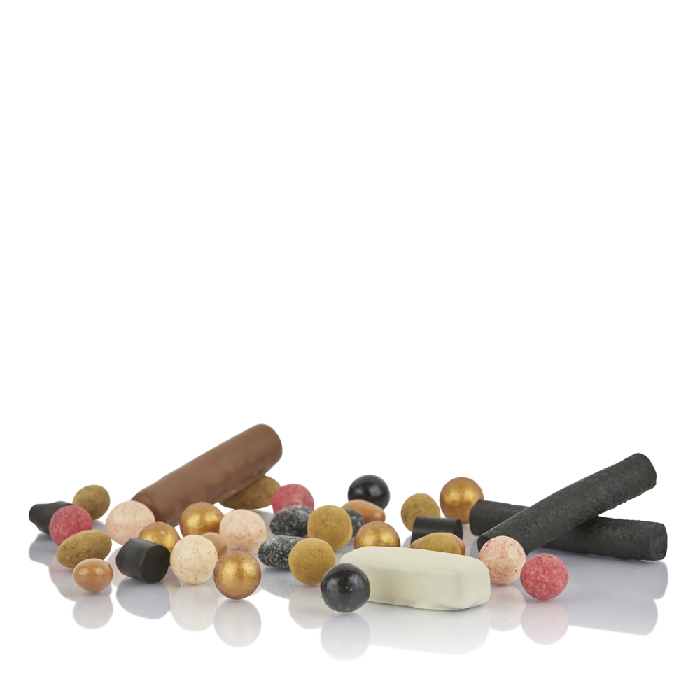 Den ULTIMATIVE gave til lakridselskeren. Et mix af lakrids overtrukket med chokolade, forskellige vingummier overtrukket med både mørk og flødechokolade, ren lakrids, mandler overtrukket med chokolade og lakrids, lakridsfudge med hvid chokolade og rød chokolade etc. Alt sammen pakken i en flot sort/guld julekalender fra Lakridseriet. 500g