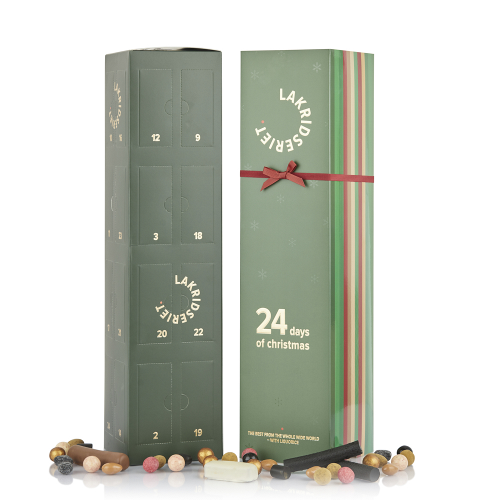 Forside / Shop / Lakrids julekalender 2025 / Ultimativ lakrids-julekalender 2025 fra Lakridseriet (XL) – 500g