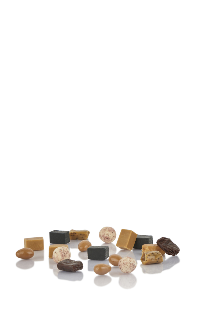 Elsker du karameller? Så finder du her et lækkert mix af flødekaramel med havsalt, karamelfudge, solbær/lakrids, lakridskaramel med lakridscrunch, chokolade/mint, chokolade og lakridsfudge. Leveret i en flot grå Cocoture trekant julekalender. 380g