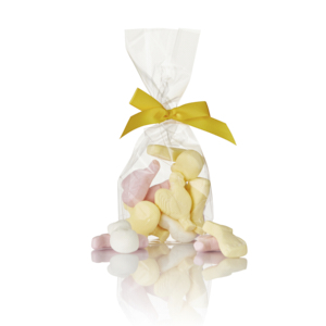 Smagfuldt påskeskum. Leveret i en cellofanpose med gul sløjfe. 60g